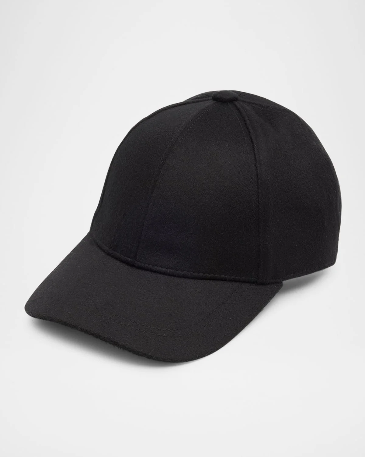 - Vince cashmere baseball cap with leather trim - Paneled crown with button - Curved brim - Adjustable back strap - Dry clean - Imported