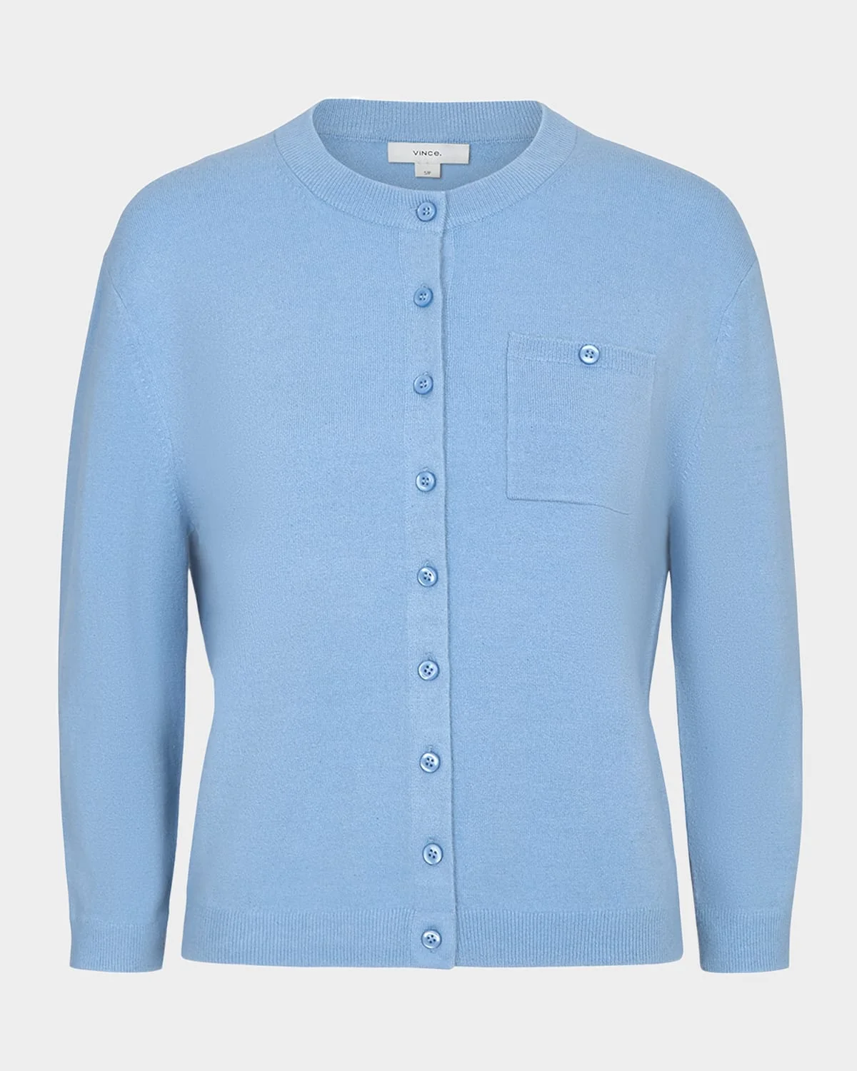 L & apos;Agence cardigan crafted from a luxurious blend of wool and cashmere & nbsp; Crew neckline Three-quarter sleeves Chest pocket Classic fit Hem sits at the hip Button-front & nbsp; Wool/cashmere/nylon/polyamide Hand wash Imported
