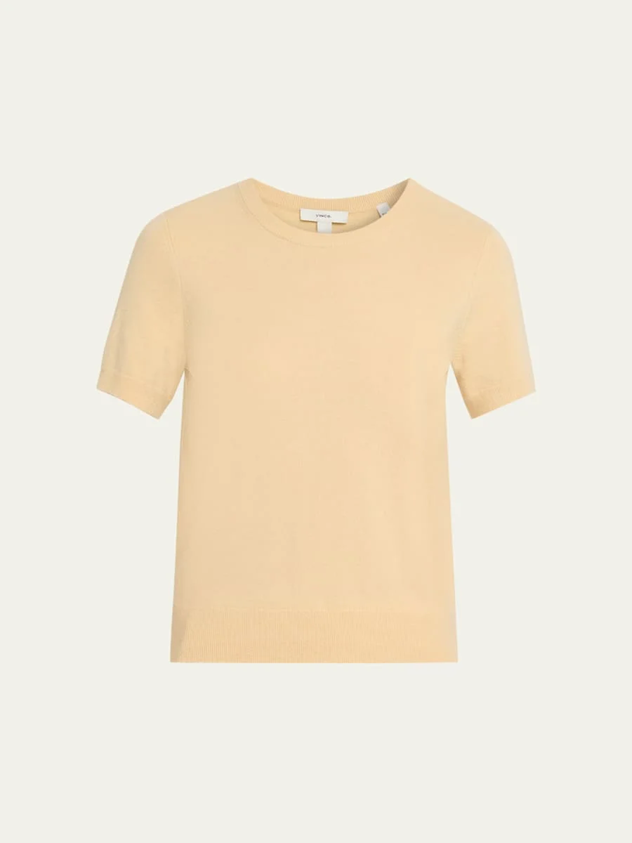 Cashmere-Blend Short-Sleeve Crewneck Sweater