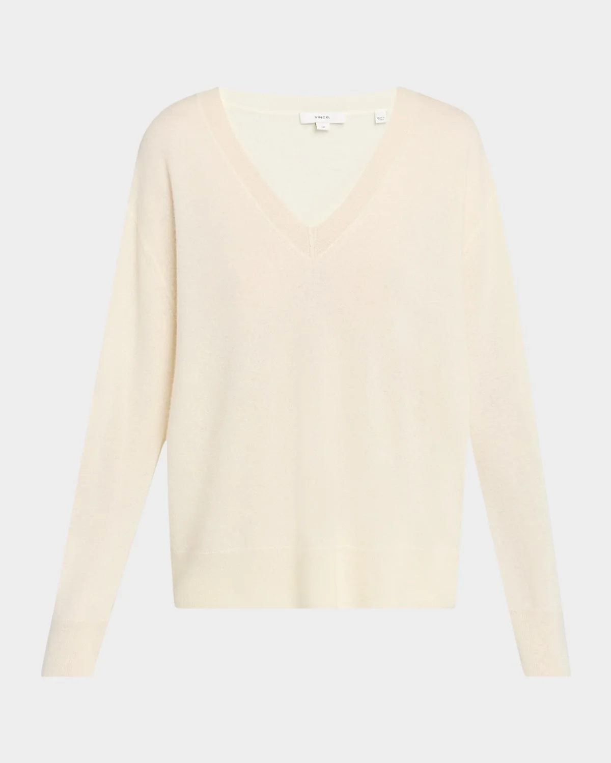 - Vince sweater crafted from a silky-soft cashmere blend - Deep V neckline - Dropped shoulders - Long sleeves - Relaxed fit - Hem falls to the hip - Pullover style - Cashmere/mulberry silk - Dry clean only - Imported - Shipping - Direct from Vendor, usually ships within 10 business days.