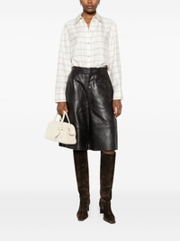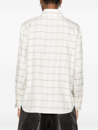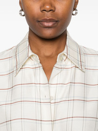 checke-pattern shirt Highlights - White - Checked pattern - Long sleeves - Button fastening - Polo collar - Curved hem Imported Composition Rayon 78%, Silk 22% SIZE & FIT Model measurements Height 5 ft 11 in(1.8 m) Bust/Chest 31.49 in(80 cm) Hips 36.61 in(93 cm) Waist 24.4 in(62 cm) Washing instructions Read Manufacturer Guidelines