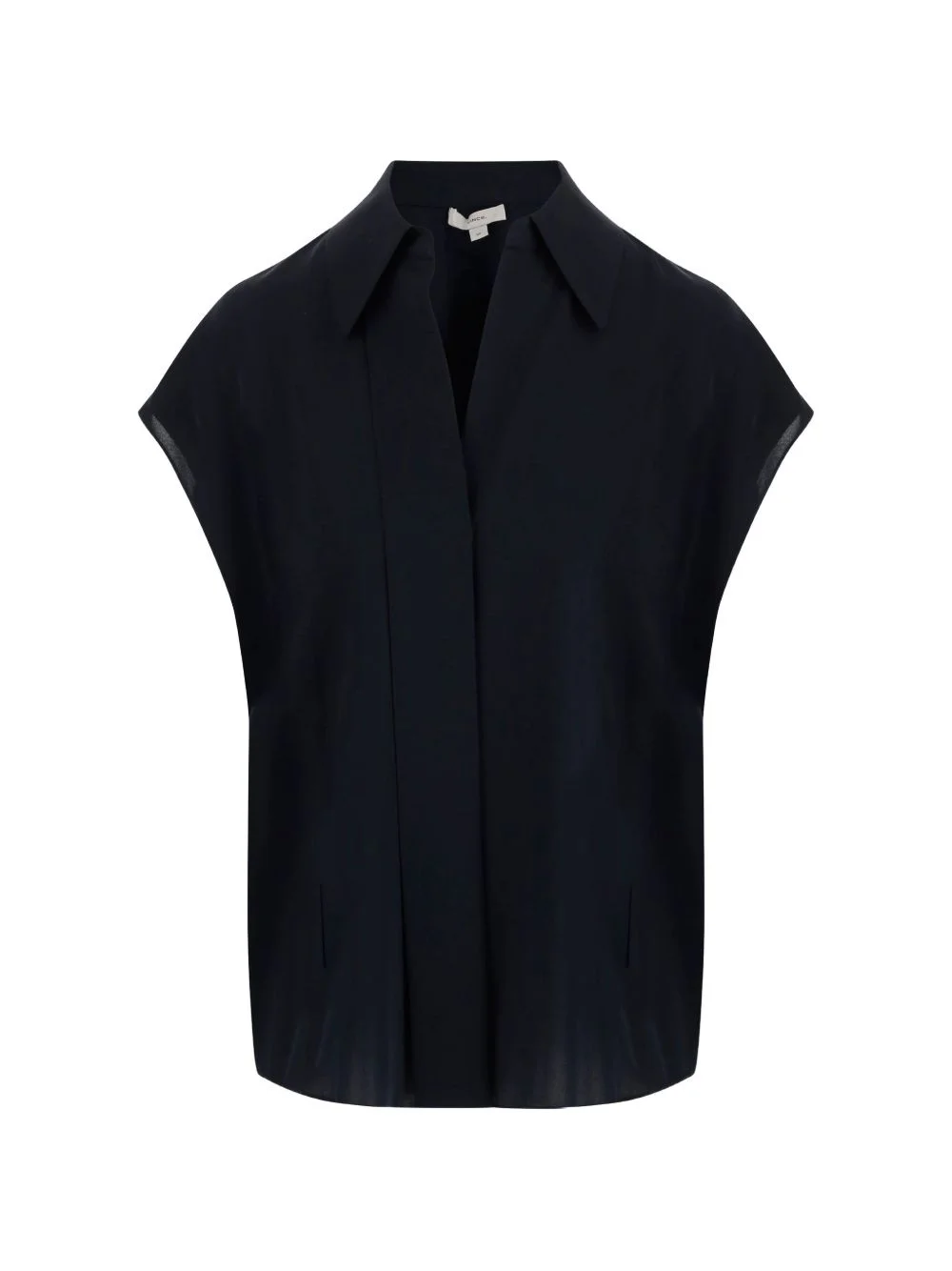 classic-collar shirt Highlights - Dark blue - Flowing silhouette - Concealed front button closure - Short sleeves - Collar Imported Composition Silk 92%, Spandex/Elastane 8% Washing instructions Read Manufacturer Guidelines