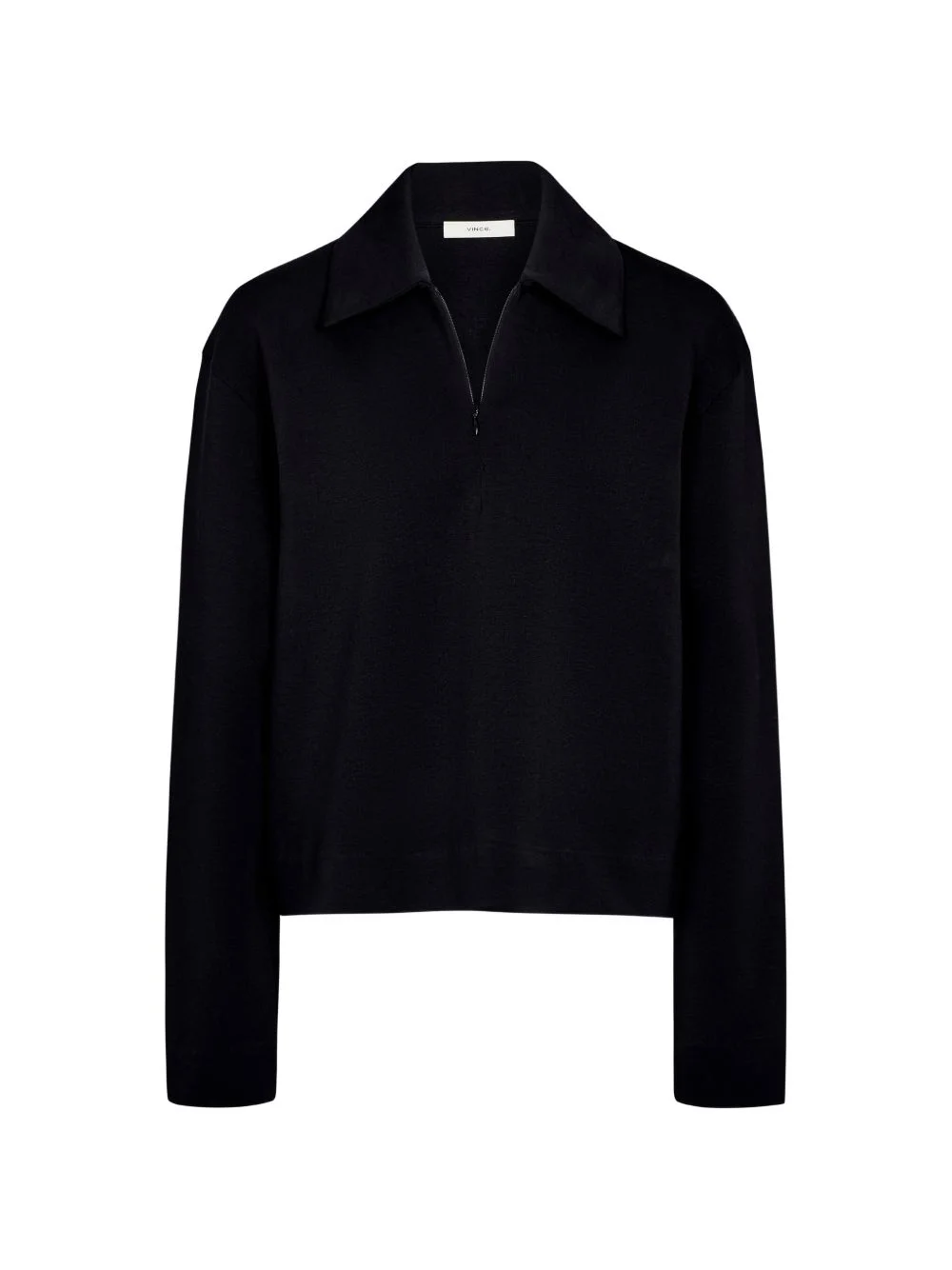 collared zip polo shirt Highlights - Black - Long sleeves - Half zip - Collared Imported Composition Cotton 78%, Polyester 17%, Spandex/Elastane 5% Washing instructions Read Manufacturer Guidelines