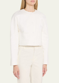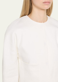 Vince cotton jacket Round neckline Long curved sleeves Patch pockets Classic fit Hem sits at the hip Button-front Cotton/elastane Lining: Cotton Dry clean, hand wash Imported Online Inquiries: BGS21_T6DUQ| Store Inquiries: #4965819
