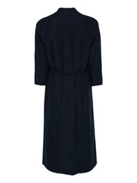 band-collar midi dress Highlights - Imperial blue - Slub texture - Box-pleat detail to the rear - Band collar - V-neck - Three-quarter length sleeves - Belt loops - Slip pockets to the sides - Detachable adjustable waist strap - Side slits - Mid-length - Straight hem - Unlined Imported Composition Cotton 49%, Linen/Flax 27%, Rayon 24%