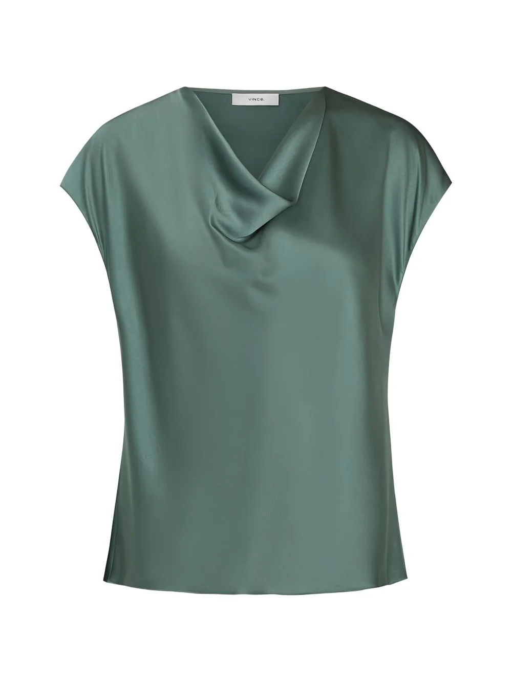cowl-neck blouse Highlights - Green - Satin finish - Cowl neckline - Short sleeves - Draped Imported Composition Silk 100% Washing instructions Hand Wash