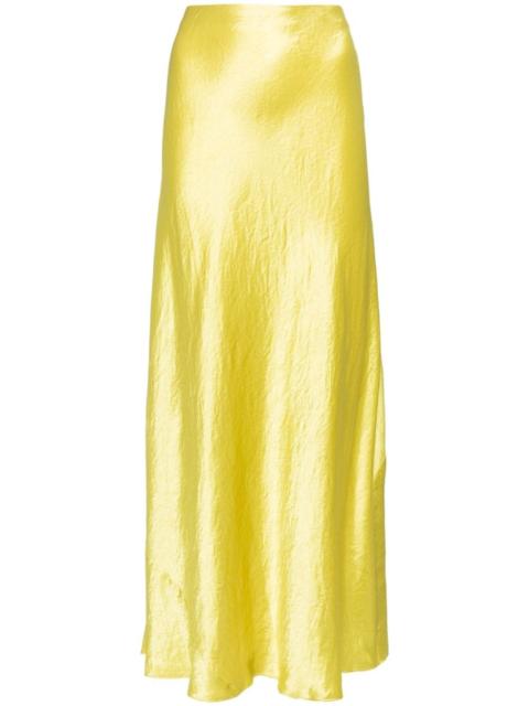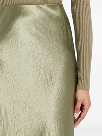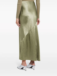 crinkled-finish satin maxi skirt Highlights - Sage green - Satin finish - Crinkled finish - Draped detailing - Side slit - High-waisted - Concealed side fastening - Long length - Straight hem Made in United States Composition Satin 100% Washing instructions Read Manufacturer Guidelines