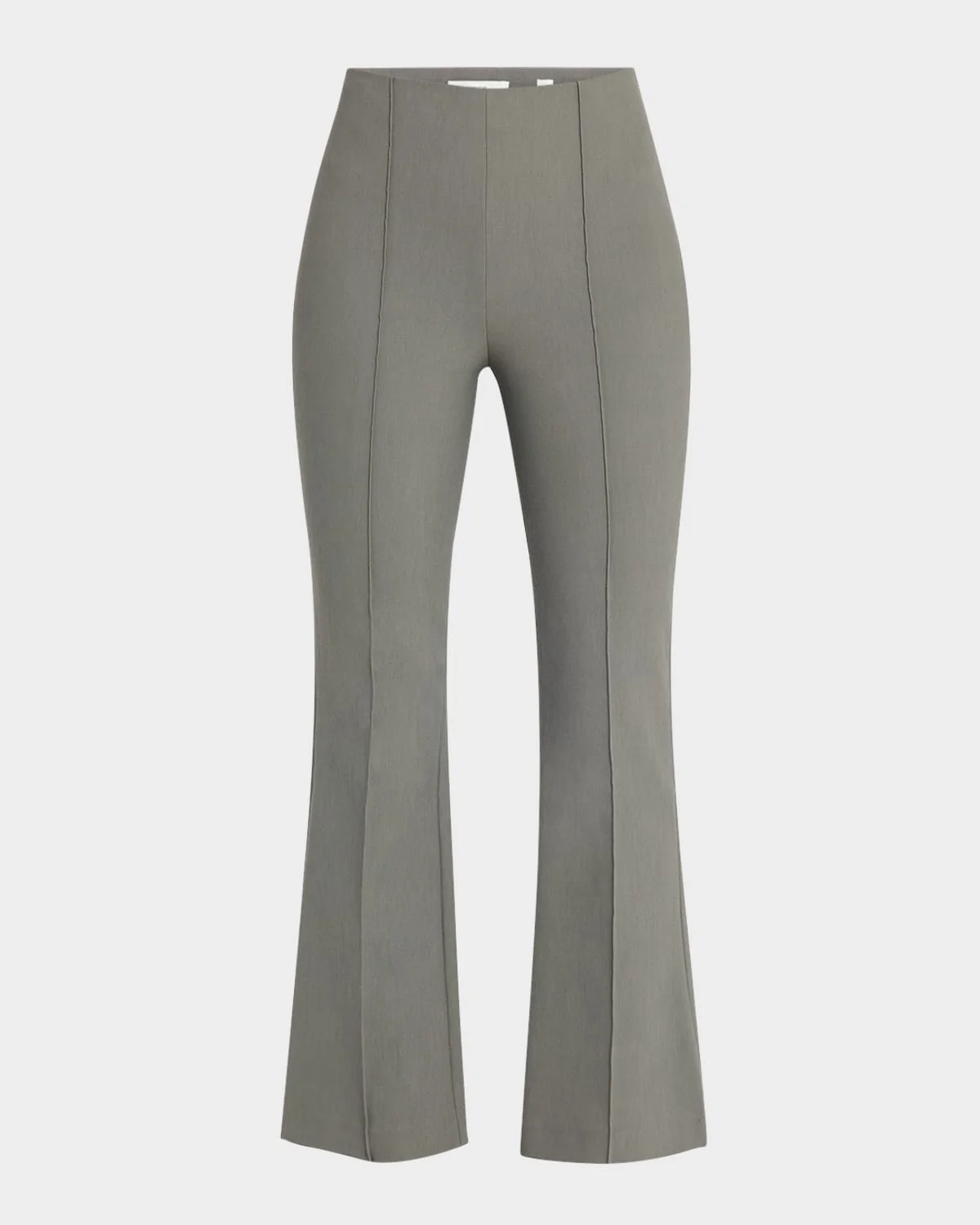 - Vince pants with front pintucks - High-rise sits high on the hips - Flat front - Back welt pockets - Cropped at the ankle - Flared legs - Invisible side zipper - Cotton/spandex - Machine wash - Imported - Model is 5'10"/177cm.