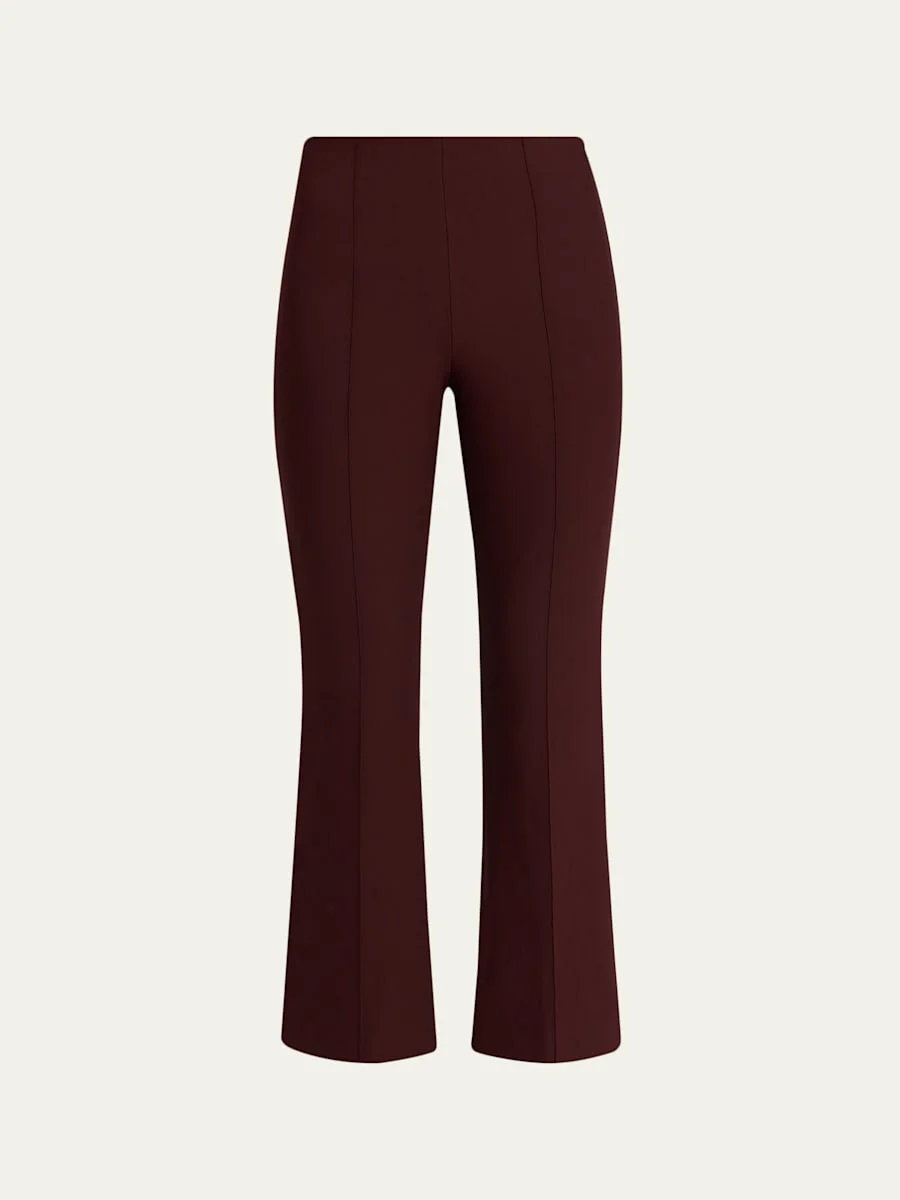 Vince pants with front pintucks High-rise sits high on the hips Flat front Back welt pockets Cropped at the ankle Flared legs Invisible side zipper Cotton/spandex Machine wash Imported Model is 5'10"/177cm. Online Inquiries: BGS21_T66Q8| Store Inquiries: #4917010