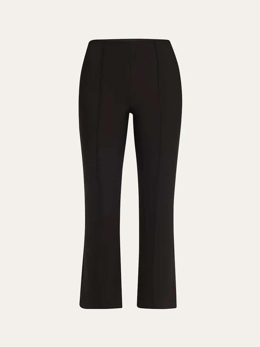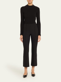 Vince pants with front pintucks High-rise sits high on the hips Flat front Back welt pockets Cropped at the ankle Flared legs Invisible side zipper Cotton/spandex Machine wash Imported Model is 5'10"/177cm. Online Inquiries: BGS21_T66Q8| Store Inquiries: #4917010