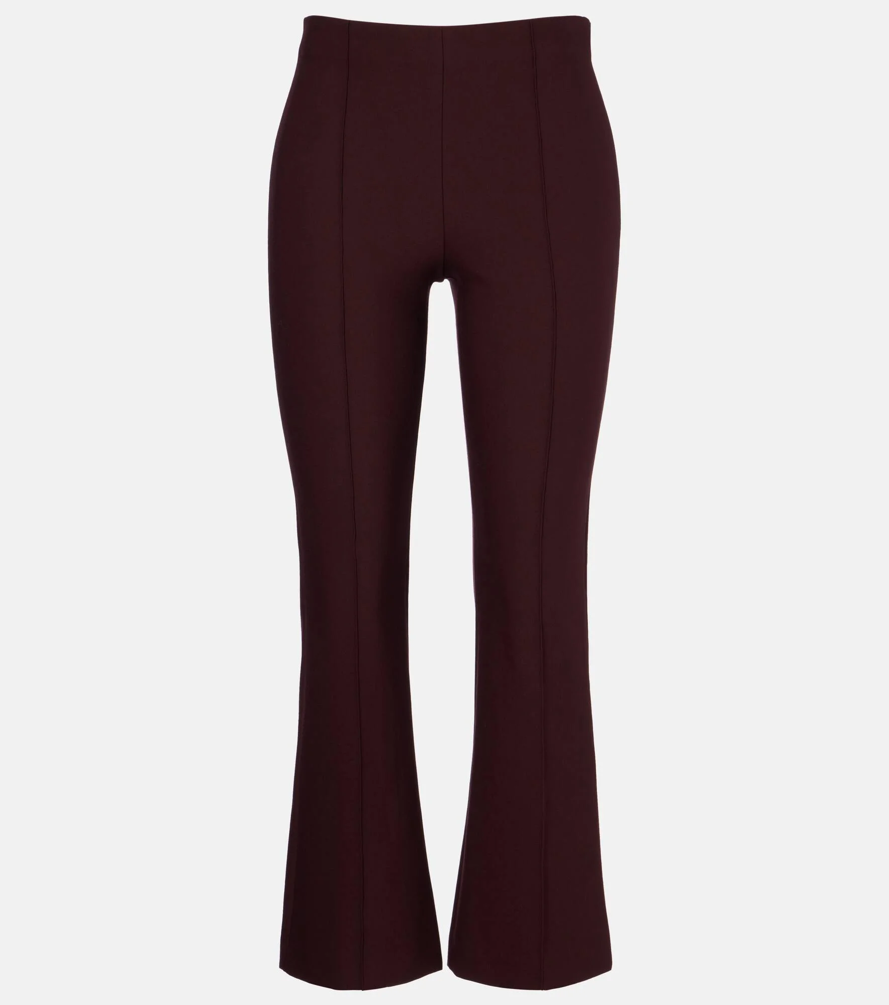 Look to Vince when building a timeless wardrobe of elevated yet understated styles. These flared pants sit high at the waist and feature a cropped silhouette with pintuck detailing. Product Details - Material: 45% cotton, 45% polyamide, 10% elastane - Care instructions: machine wash cold - Made in Vietnam - Designer color name: Oxblood - Item color: burgundy - Elasticated waistband - Pockets: back pockets - Closure: concealed zipped side - Item number: P01123763 Size & Fit - True to size - Elasticated waist - Slightly stretchy fabric - Flared - The model seen in the picture is 178cm-5'10" and wearing a size XS