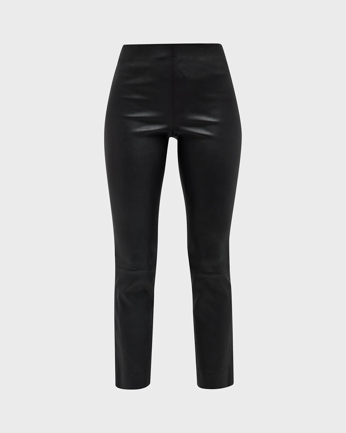 Vince paneled leggings crafted from supple leather High rise Flat front Skinny legs Cropped above the ankle Pullon style Professional clean only Imported