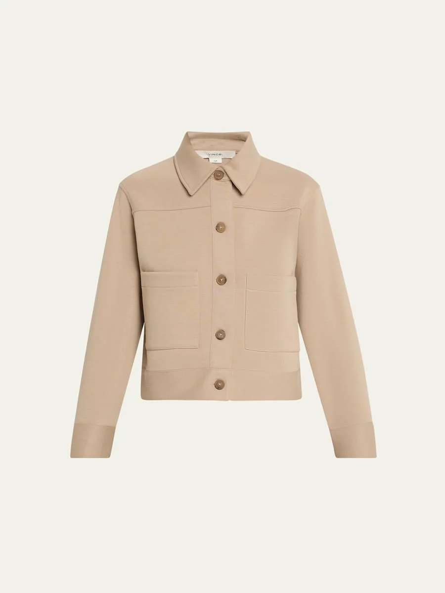 Vince cropped jacket Point collar Long sleeves with button cuffs Patch pockets Classic fit Button-front Polyester/rayon/cellulose acetate/wool Hand wash or dry clean Imported Online Inquiries: BGS21_T6BZC| Store Inquiries: #4957703