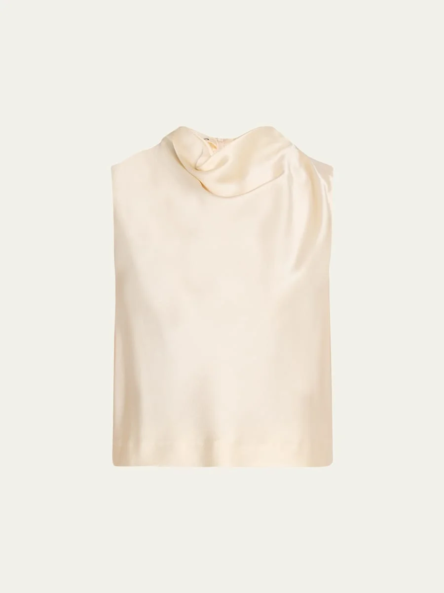 Cropped Satin Cowl-Neck Top