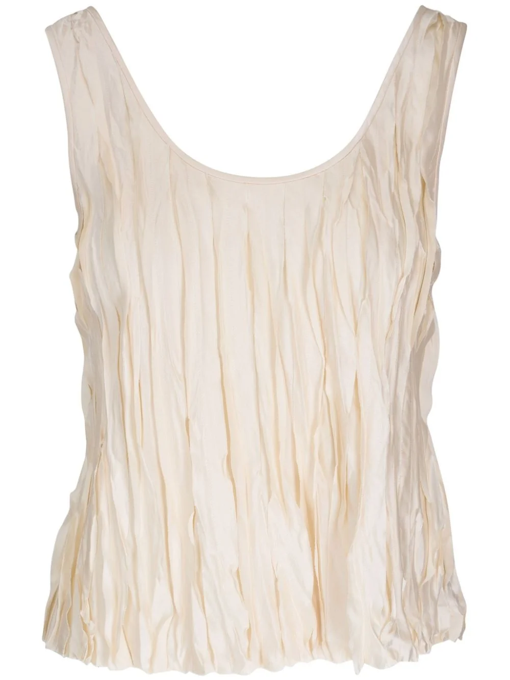 Crushed tank top Highlights - Ivory white - Ruched detailing - Scoop neck - Sleeveless - Scoop back - Asymmetric hem - Slip-on style Made in United States Composition Polyester 100% Washing instructions Hand Wash