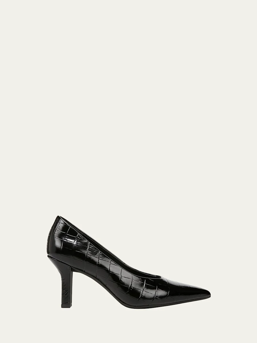 Vince "Diane" crocodile-embossed leather pumps 3.00 in / 75 mm architectural heel Pointed toe Slip-on style Leather outsole Lining: Leather Imported Shipping Direct from Vendor, usually ships within 14 business days. Online Inquiries: BGS21_X6MR7| Store Inquiries: #4833159