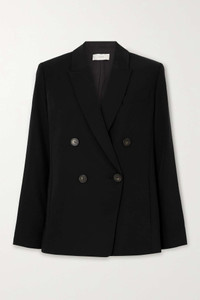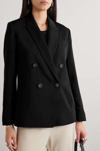 EDITORS'NOTES Vince's black blazer is a classic style you'll turn to for years to come. Made from smooth crepe, it has a double-breasted front with peak lapels and on-seam pockets. The back vent allows for easy movement and layering. Wear yours with the matching pants or jeans. SIZE & FIT - Fits true to size, however those who are between sizes should take the smaller size - Designed for a slightly loose fit - Internal shoulder pads - Lightweight, non-stretchy fabric - Model is 177cm/ 5'10" and is wearing a US 2 DETAILS & CARE - Black crepe - Button fastenings through double-breasted front - 100% polyester - Hand wash