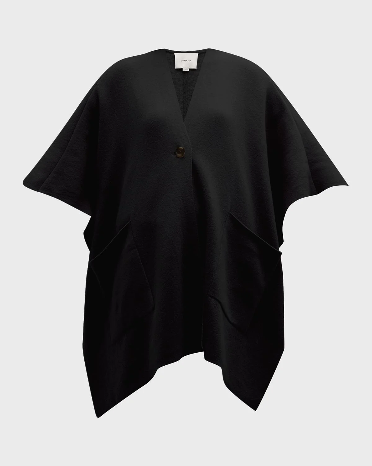 Vince doublefaced cape in wool and cashmere Approx. 45"L x 30"W Button closure Deep pockets Side vents Dry clean, hand wash Imported