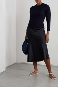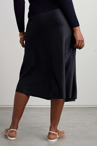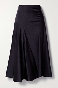 EDITORS'NOTES We love Vince for its timeless wardrobe staples. Made from lustrous satin that's been softly crinkled, this midi skirt is both paneled and softly pleated for a fluid drape. Wear yours with a tonal sweater and ballet flats. SIZE & FIT - Fits true to size, take your normal size - Midi-length, designed to be worn at the waist - Lightweight, non-stretchy fabric - Model is 180cm/ 5’11” and is wearing a US 6 DETAILS & CARE - Midnight-blue crinkled-satin - Concealed hook and zip fastening at side - 86% triacetate, 14% polyester - Hand wash