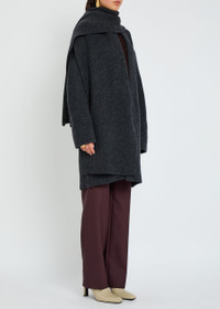 Info & Care Vince knit cardigan; Scarf-effect panel, side slip pockets, open front Slips on 39% wool, 25% nylon, 23% viscose, 3% cashmere, 1% spandex Hand wash Size & Fit Length shoulder to hem: 35 inches/ 89cm Midweight Relaxed fit Model is 5'10"/ 178cm and wears a size small;