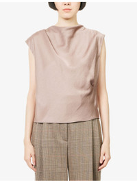 PRODUCT DETAILS - Vince woven top - 100% polyester - Concealed zip fastening at back - Relaxed fit, cow-neck, sleeveless, draped, all-over satin texture - Hand wash cold - True to size - Size small: length 20in / 52cm - Model is 5ft 10in/1.78m and wears a size small - Lightweight, slight stretch Ref: R04518689