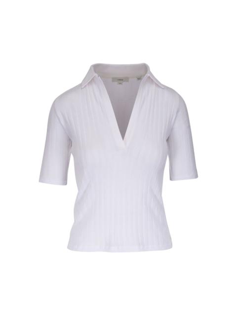 ribbed t-shirt Highlights - Pink - Short sleeves - V-neckline - Ribbed design - Polo collar Imported Composition Cotton 100% Washing instructions Hand Wash