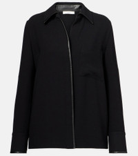 Faux leather-trimmed shirt