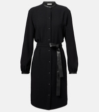 Faux leather-trimmed shirt dress