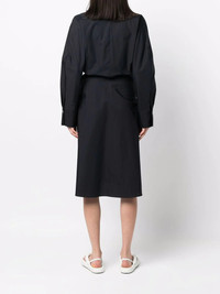 pointed-collar cotton shirt dress dark blue cotton straight-point collar front button fastening long sleeves buttoned cuffs mid-length Made in United States Composition Cotton 100% SIZE & FIT Model measurements Height 5 ft 10 in(1.78 m) Bust/Chest 31.49 in(80 cm) Hips 36.22 in(92 cm) Waist 25.59 in(65 cm) FittingInformation This piece fits true to size. We recommend you get your regular size Designed for a loose fit with a close fit at the waist Made with a mid-weight non-stretch fabric Measurement WAIST 37.79 in(96 cm) BUST 44.88 in(114 cm) Washing instructions Machine Wash
