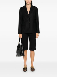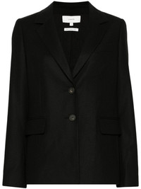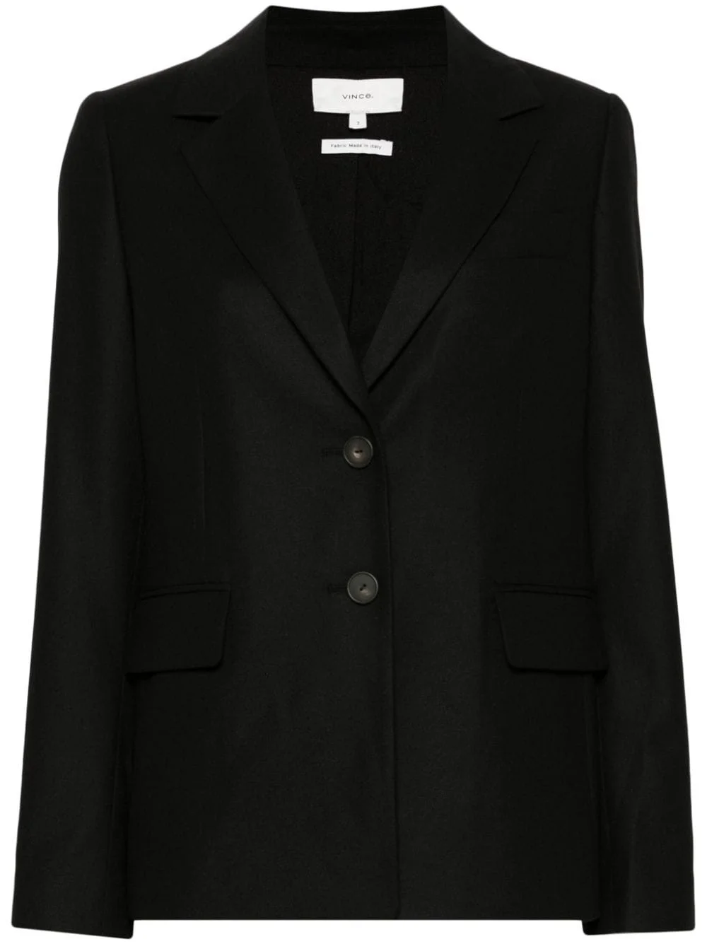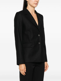 flannel blazer Highlights - Black - Flannel - Front button fastening - Notched lapels - Shoulder pads - Long sleeves with buttoned cuffs - Chest welt pocket - Dart detailing - Two side flap pockets - Central rear vent - Internal slip pocket - Full lining - Straight hem Made in Italy Composition Outer: Wool 39%, Viscose 30%, Polyester 30%, Elastane 1% Lining: Polyester 100% SIZE & FIT Model measurements Height 5 ft 11 in(1.8 m) Bust/Chest 33.07 in(84 cm) Hips 37.4 in(95 cm) Waist 25.19 in(64 cm) FittingInformation Designed for a slim fit that sits just away from the body offering a close yet comfortable fit The internal shoulder pads offer a structured shape Made from a midweight fabric