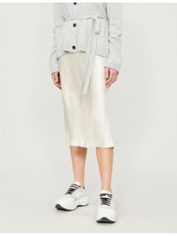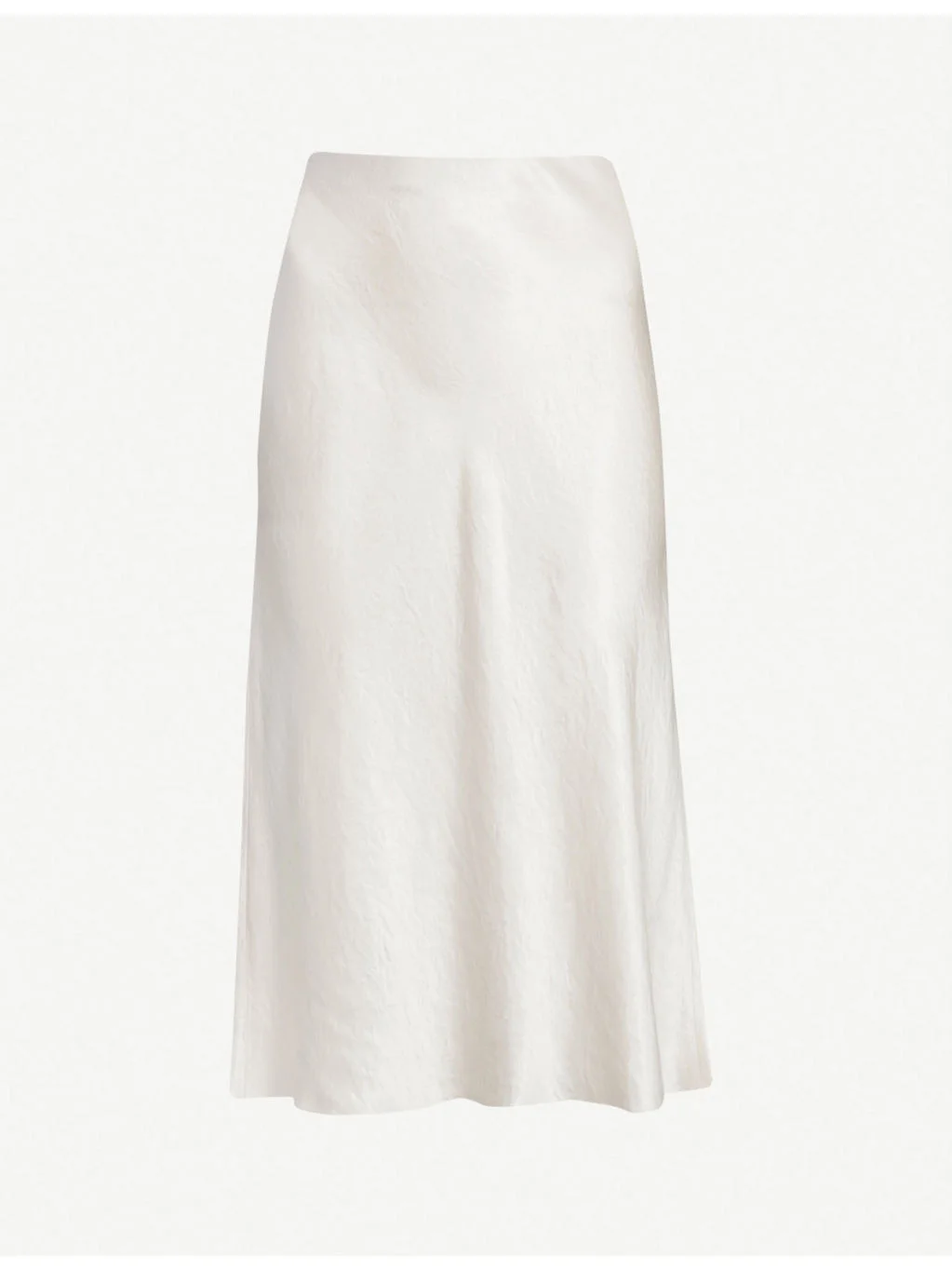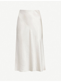 PRODUCT DETAILS " Vince satin skirt Slips on High-rise, elasticated waistband, crushed texture, flared hem 100% acetate Hand wash cold True to size Size small: Length 29"" Model is 5 ft 10"" and wears a size small "