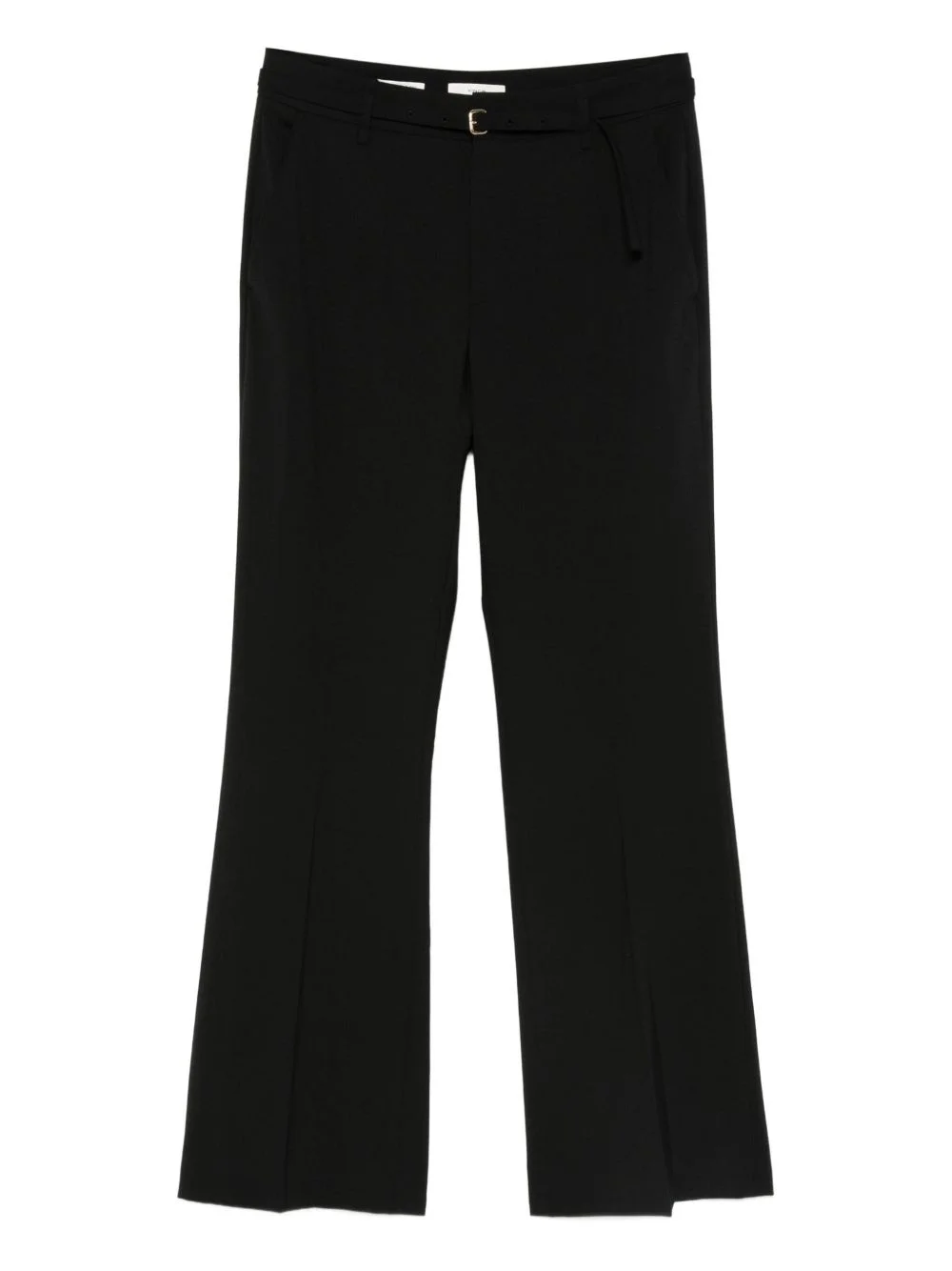 flared-leg tailored trousers Highlights - Black - Belt loops - Front pockets - Flared leg - Zip fly Imported Composition Polyester 53%, Wool 43%, Elastane 4% SIZE & FIT Model measurements Height 5 ft 10 in(1.78 m) Bust/Chest 33.85 in(86 cm) Hips 36.61 in(93 cm) Waist 26.77 in(68 cm) Washing instructions Hand Wash