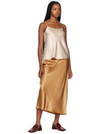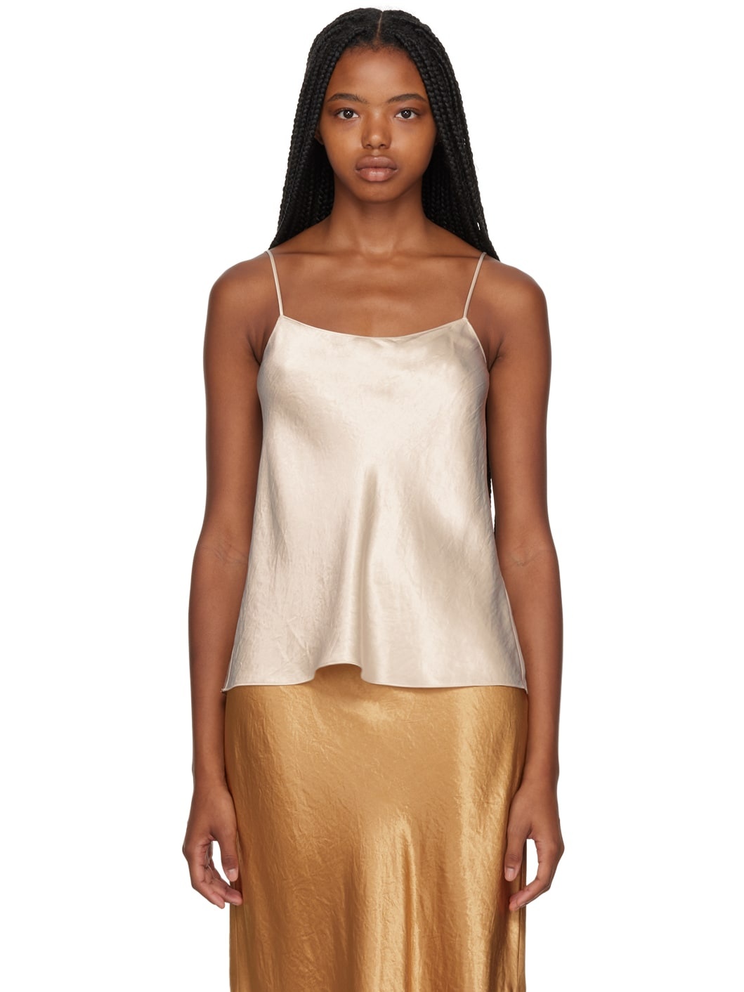 Acetate satin tank top. · Scoop neck · Adjustable spaghetti straps Supplier color: Champagne 100% acetate.