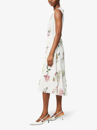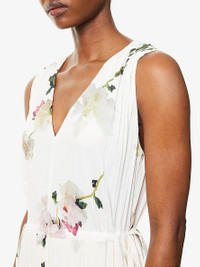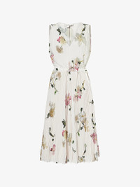 PRODUCT DETAILS - Vince woven midi dress - 100% polyester; lining 100% polyester - Relaxed fit, V-neck, sleeveless, drawstring waistband, two slip pockets at front, all-over floral print, all-over pleated, partially lined - Hand wash cold - True to size - Size small: length 45in / 115wcm - Model is 5ft 10in/1.78m and wears a size small - Lightweight, stretchy Ref: R04443621