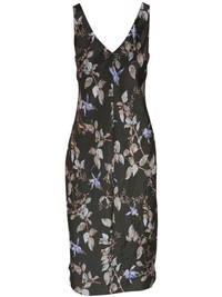 floral-print satin midi dress Highlights - Cornflower blue/multicolour - Satin weave - All-over floral print - V-neck - Wide shoulder straps - V-back - Mid-length - Straight hem Made in United States Composition Polyester 100%