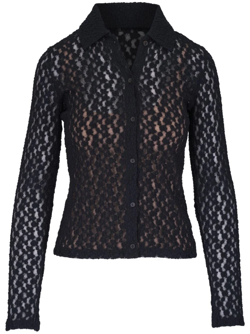 floral lace shirt Highlights - Black - Floral-lace detailing - Front button fastening - Spread collar - Long sleeves - Straight hem Made in United States Composition Nylon 52%, Cotton 45%, Spandex/Elastane 3%