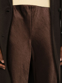 wide leg trousers Highlights - Espresso - Textured finish - Straight leg - Wide leg - No pockets - No embellishments Imported Composition Polyester 55%, Recycled Polyester 45% SIZE & FIT Model measurements Height 5 ft 10 in(1.78 m) Bust/Chest 31.49 in(80 cm) Hips 37 in(94 cm) Waist 23.62 in(60 cm) Washing instructions Machine Wash