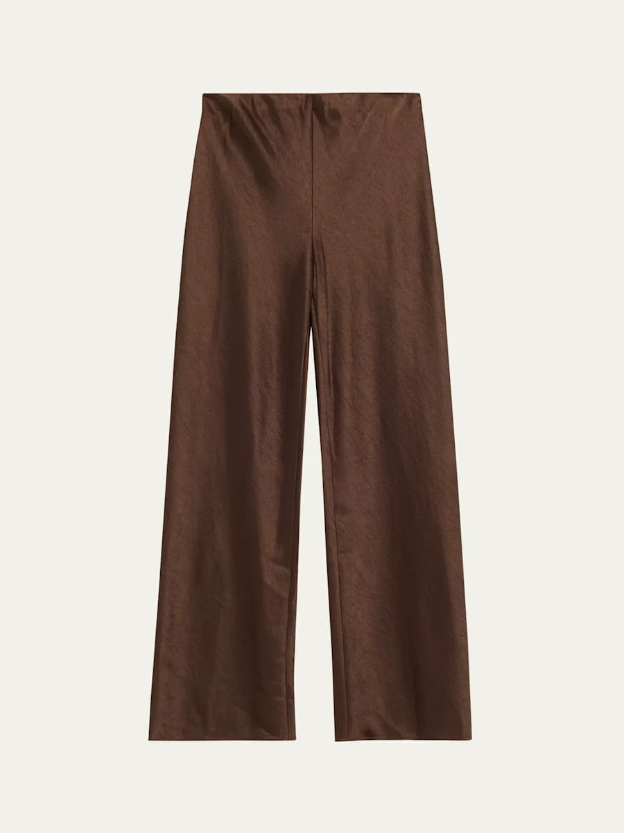 Vince satin pants cut on the bias for fluid movement Mid rise sits high on hip Elasticized waistband Relaxed fit Straight legs Full length Pull-on style Polyester Dry clean, machine wash cold, tumble dry Imported Model is 5'10"/177cm. Online Inquiries: BGS21_T5Y74| Store Inquiries: #4666564