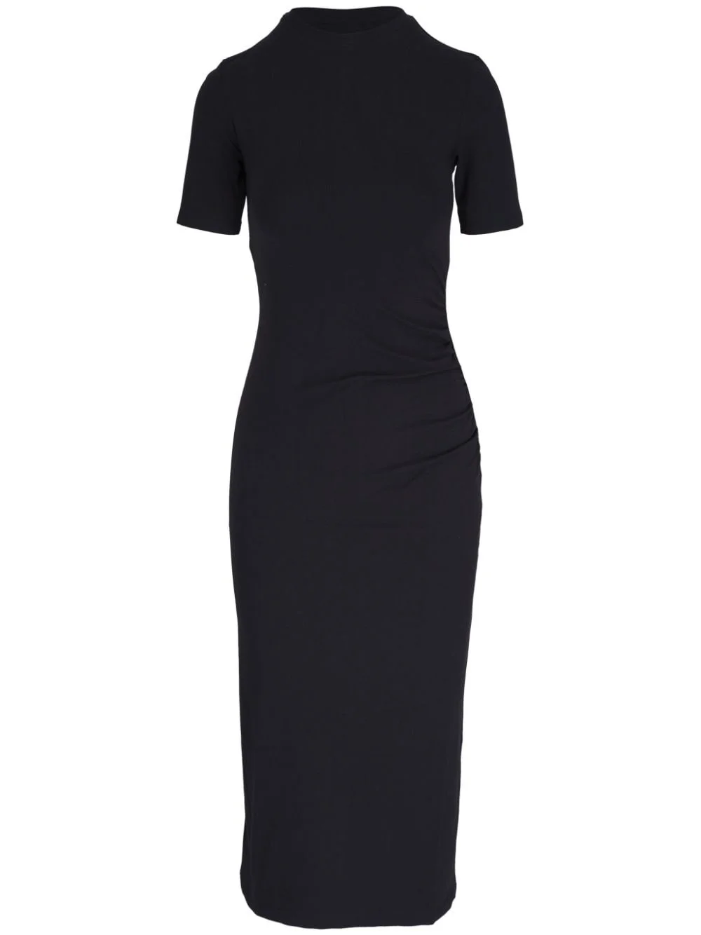side-draped midi dress Highlights - Black - Stretch-cotton - Jersey texture - Draped detailing - Gathered detailing - Rear slit - Crew neck - Short sleeves - Fitted waistline - Mid-length - Straight hem Made in United States Composition Cotton 94%, Elastane 6% Washing instructions Read Manufacturer Guidelines