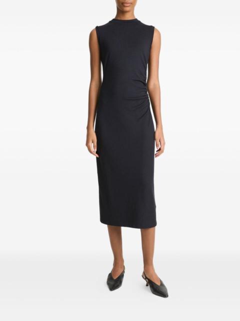gathered dress Highlights - Periwinkle blue - Gathered detailing - Crew neck - Sleeveless - Mid-length Imported Composition Polyester 53%, Rayon 45%, Spandex/Elastane 2%