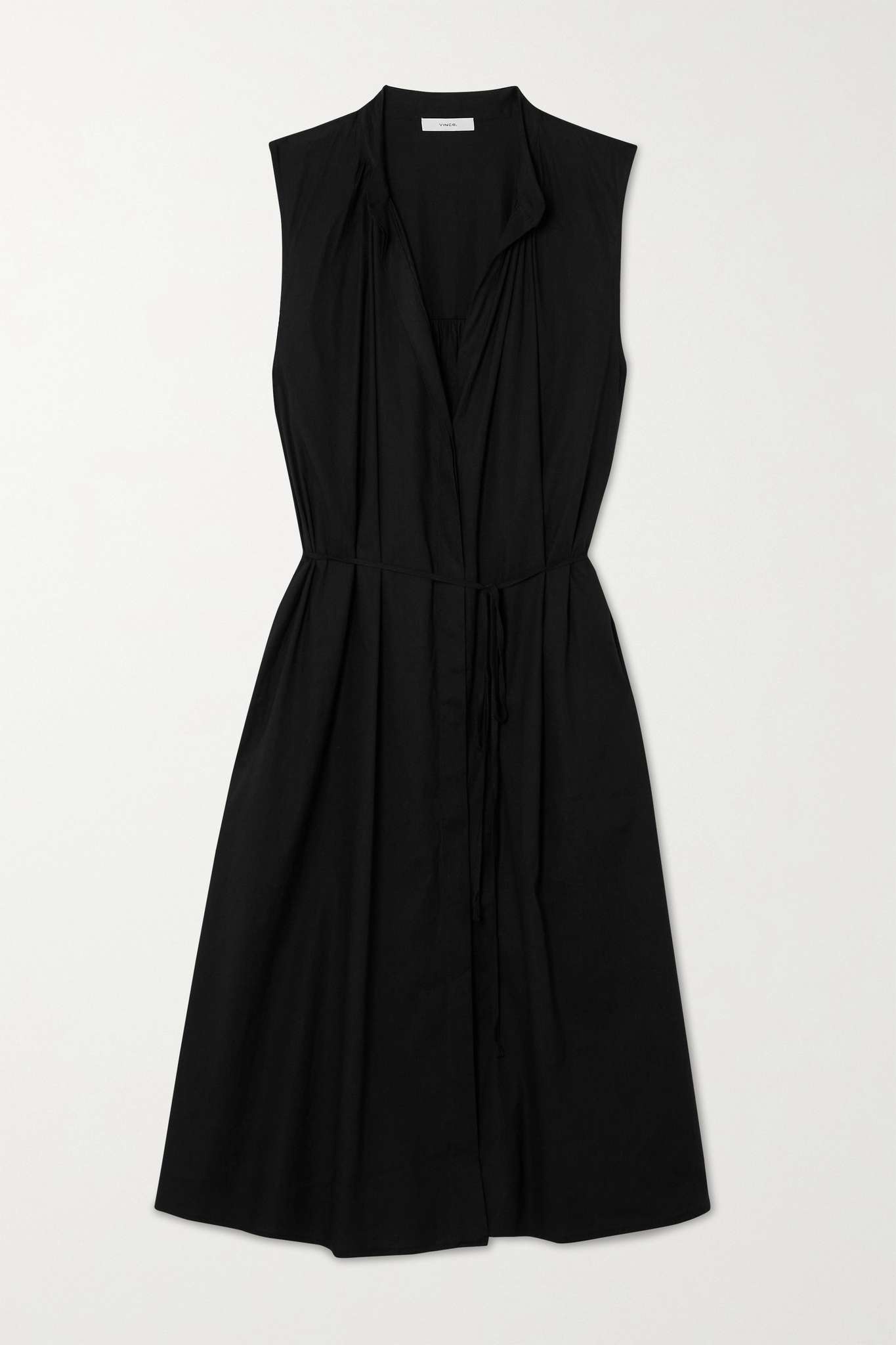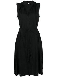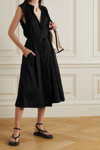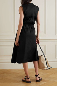 Gathered linen-blend midi dress