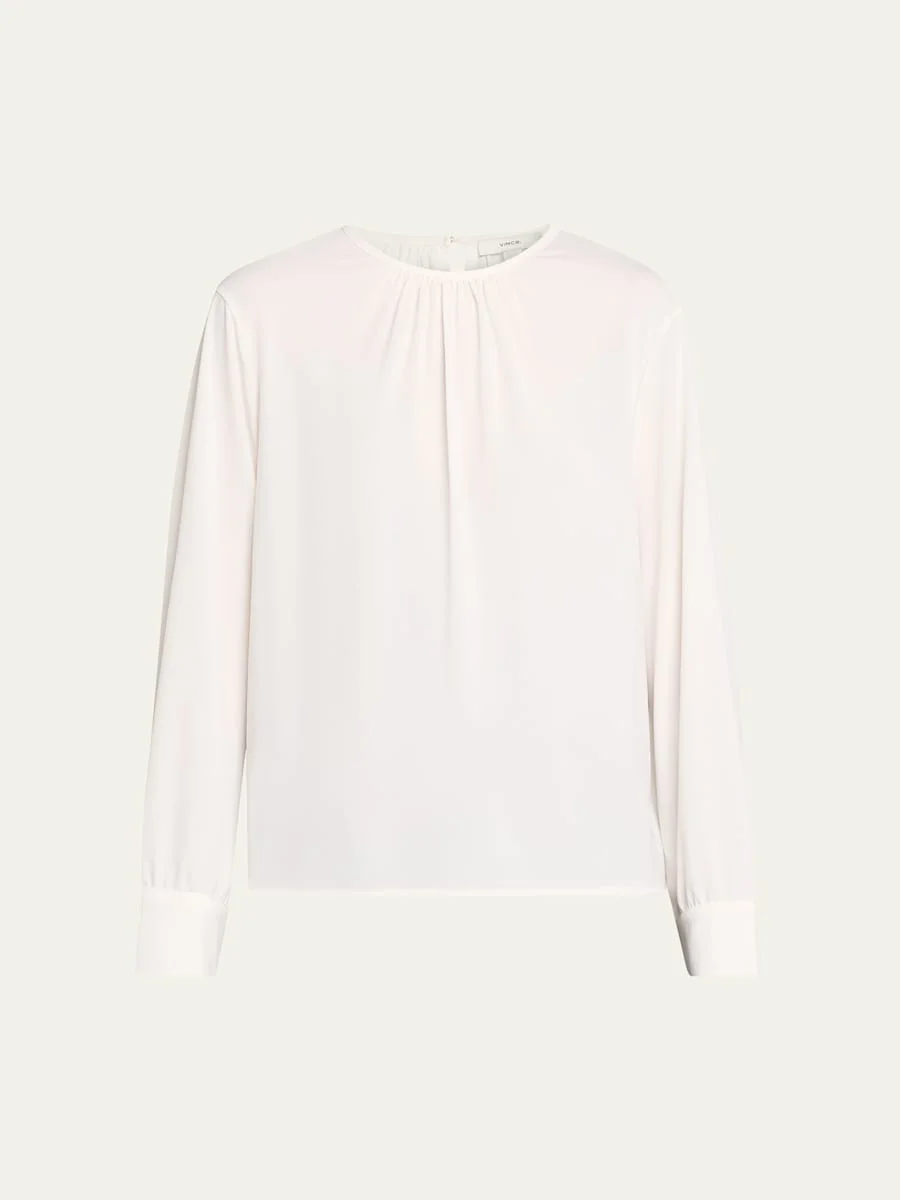 Gathered Long-Sleeve Crepe Blouse