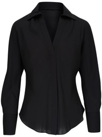 georgette silk shirt Highlights - Black - Silk - Georgette - Spread collar - V-neck - Concealed front fastening - Curved hem Made in United States Composition Silk 100% SIZE & FIT Measurement CHEST 37 in(94 cm) SLEEVE LENGTH 29.52 in(75 cm) HIPS 42.51 in(108 cm) LENGTH 26.37 in(67 cm) WAIST 35.43 in(90 cm) Washing instructions Hand Wash