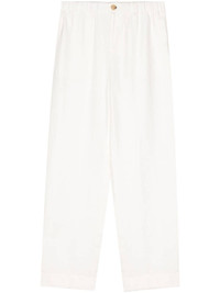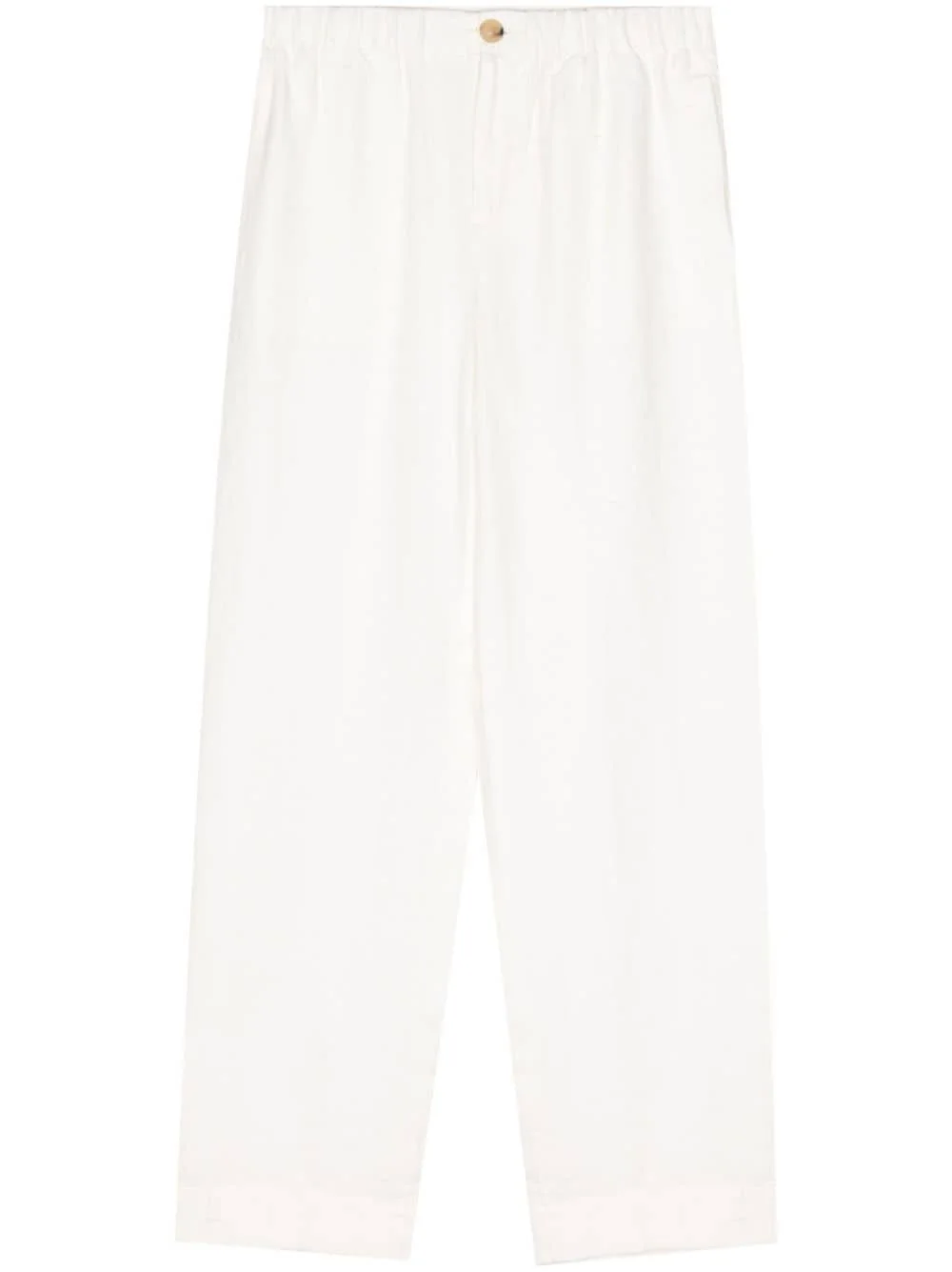 elasticated-waist wide-leg trousers Highlights - White - Hemp - Elasticated waistband - Front button fastening - Wide leg - Two side inset pockets - Two rear welt pockets Imported Composition Outer: Hemp 100% Washing instructions Machine Wash