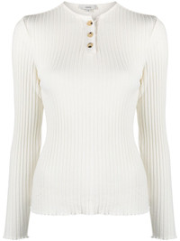 Henley-neck ribbed jumper Highlights - White - Cotton blend - Stretch-design - Knitted construction - Ribbed knit - Henley neck - Front button placket - Long sleeves - Lettuce hem Imported Composition Cotton 78%, Polyester 19%, Spandex/Elastane 3%