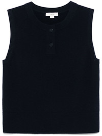 Henley vest Highlights - Navy blue - Front button placket - Crew neck - Sleeveless - Ribbed hem Imported Composition Wool 54%, Cashmere 35%, Polyester 11% SIZE & FIT Model measurements Height 5 ft 11 in(1.8 m) Bust/Chest 31.49 in(80 cm) Hips 36.61 in(93 cm) Waist 24.4 in(62 cm) FittingInformation Designed for a relaxed fit, this piece allows for comfort and movement when worn Made with a midweight knit, this piece offers some stretch Washing instructions Hand Wash