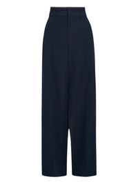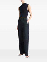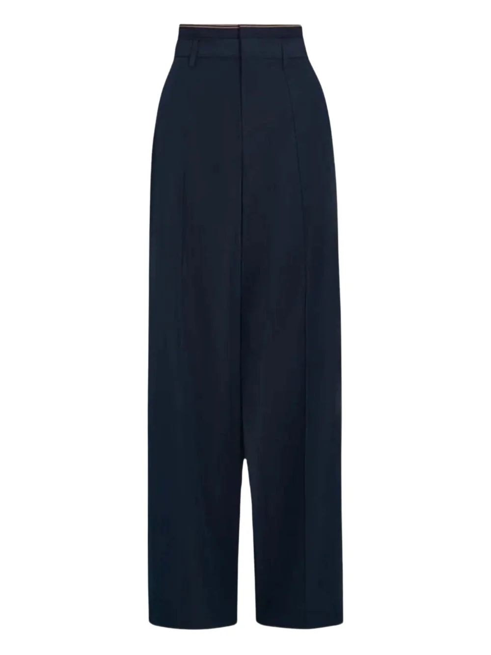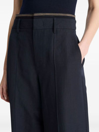 ribbed-trim straight trousers Highlights - Coastal blue - Ribbed trim - Side pockets - Centre-crease - Straight leg Imported Composition Cotton 48%, Rayon 26%, Linen/Flax 26% Washing instructions Read Manufacturer Guidelines
