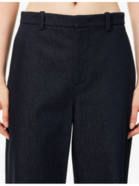 PRODUCT DETAILS - Vince denim trousers - 100% cotton - Concealed button, hook-and-eye and zip-fly fastening at front - Relaxed fit, high-rise, wide leg, belt loops, two slip pockets at front, two patch pockets at back - Dry clean - True to size - Size UK 8: rise 13in / 34cm, inside leg 32in / 82cm, leg opening 22in / 56cm - Model is 5ft 10in/1.78m and wears a size UK 8 - Midweight, slight stretch Ref: R04481790
