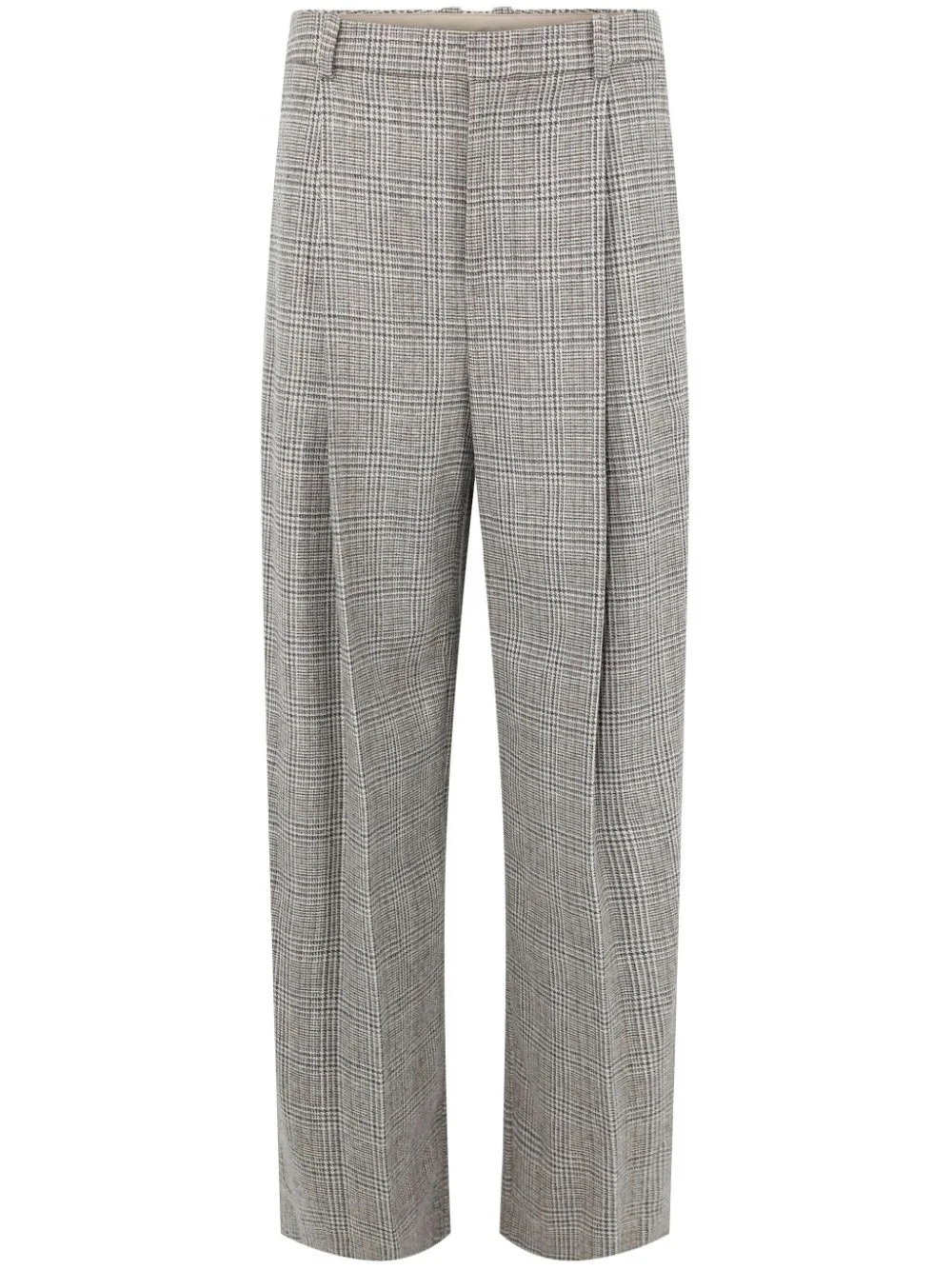 plaid-check trousers Highlights - Grey - Wool blend - Plaid check pattern - Concealed front fastening - Belt loops - Pressed crease - Two rear welt pockets - Straight leg Imported Composition Wool 49%, Polyester 39%, Viscose 12%