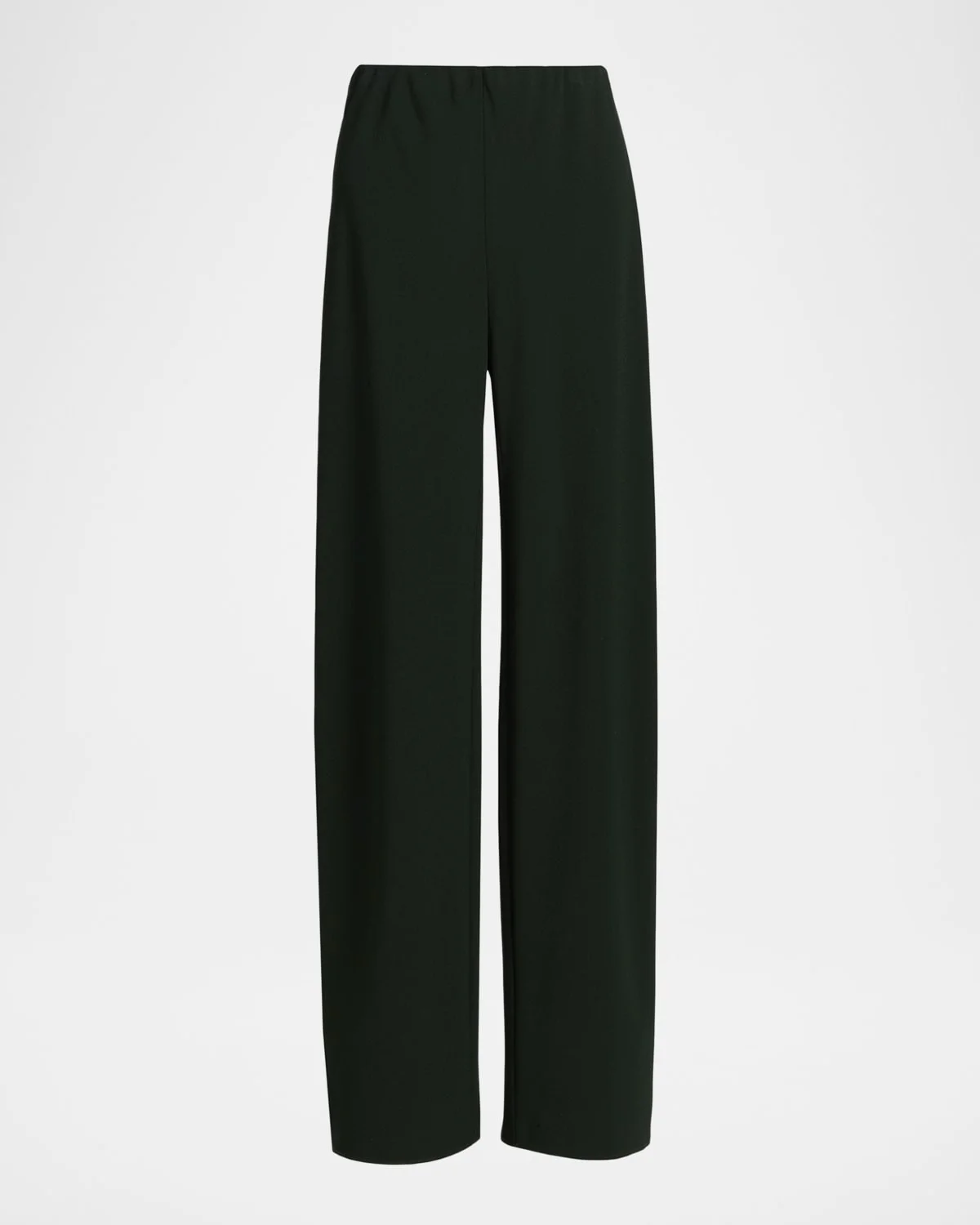 Vince elegant biascut crepe pants Model's height is 5' 0", bust 32", waist 24", hips 35". Model wears a size S. Elasticized waistband High rise Flat front Wide legs Cropped at the ankle Pullon style Acetate/polyester Hand wash or dry clean Imported